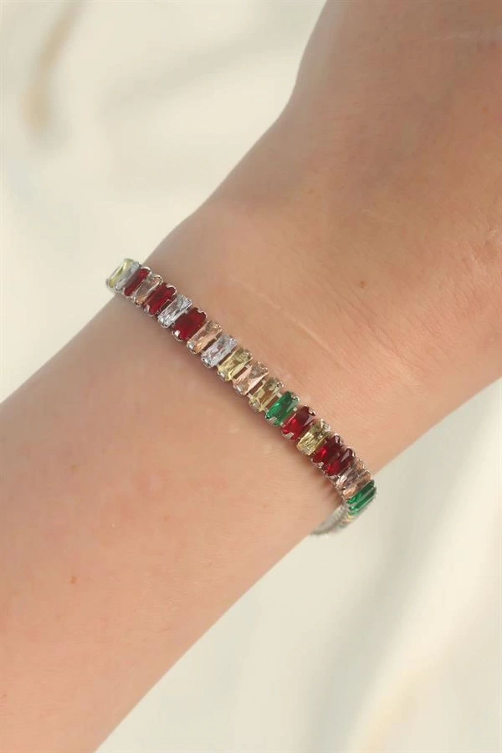 316L Çelik Gold Renk İtalyan Zincir Renkli Zirkon Taşlı Kadın Bileklik