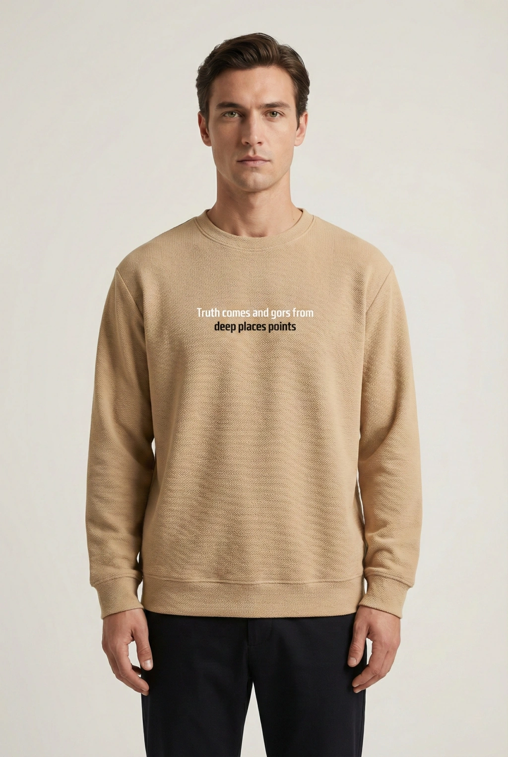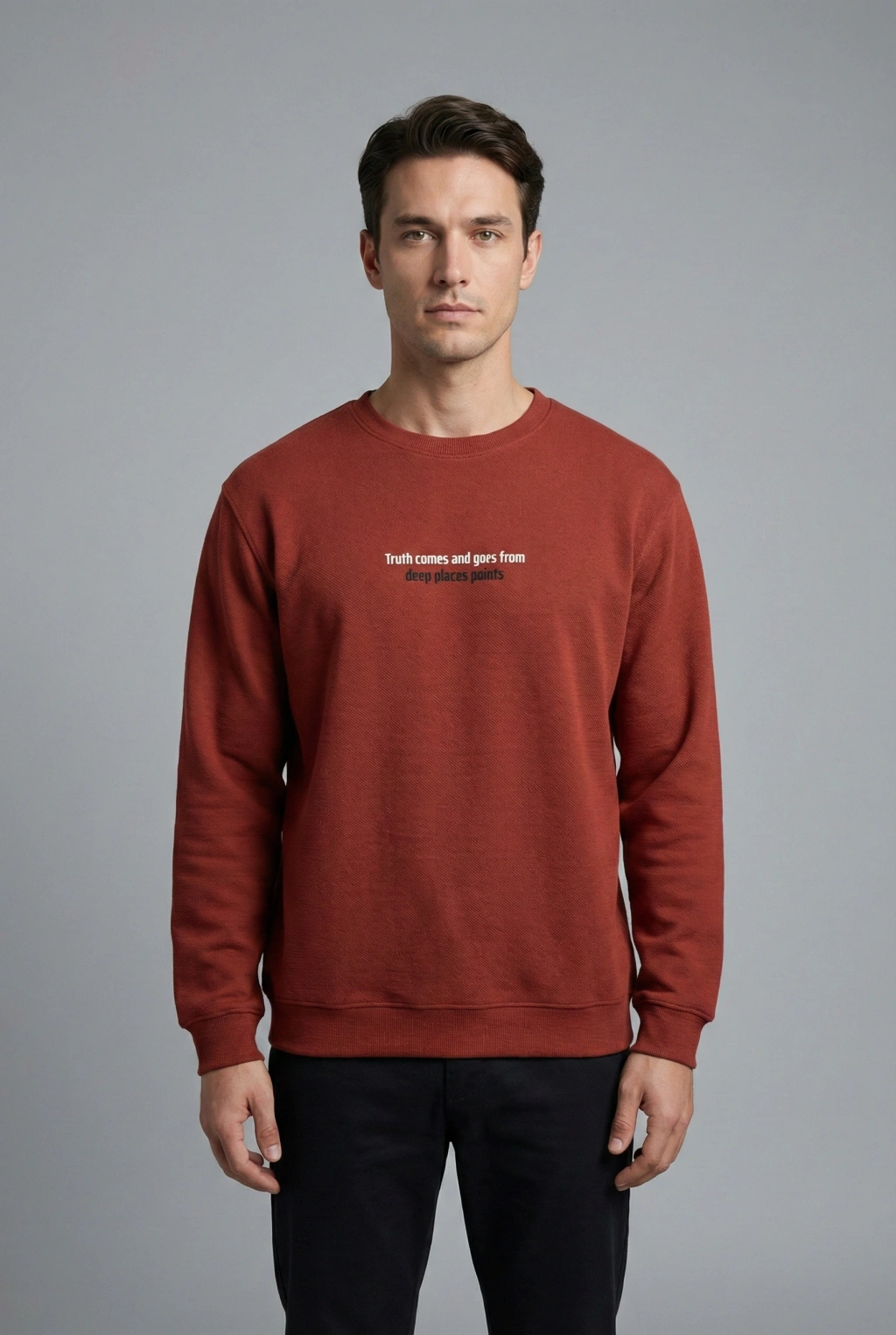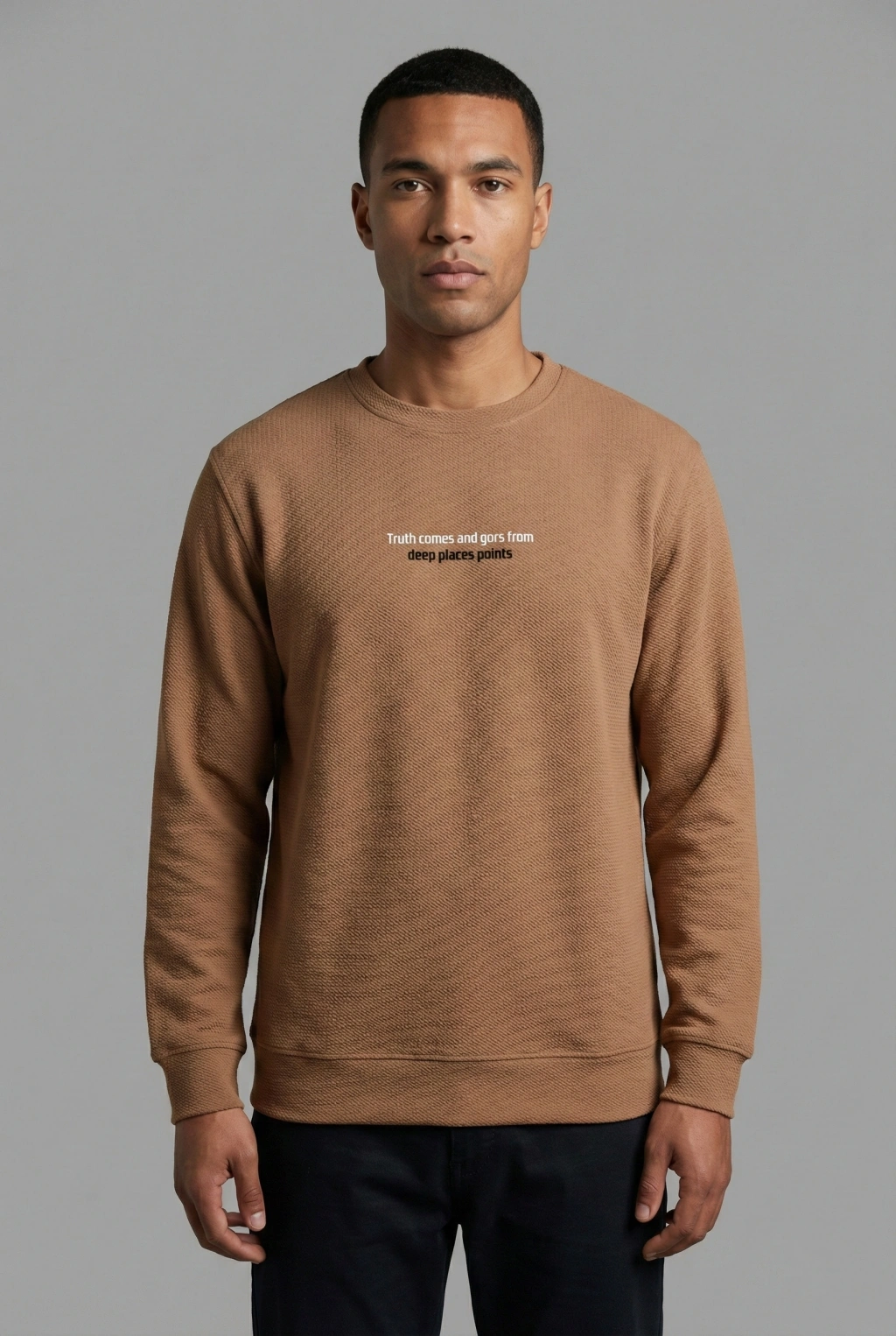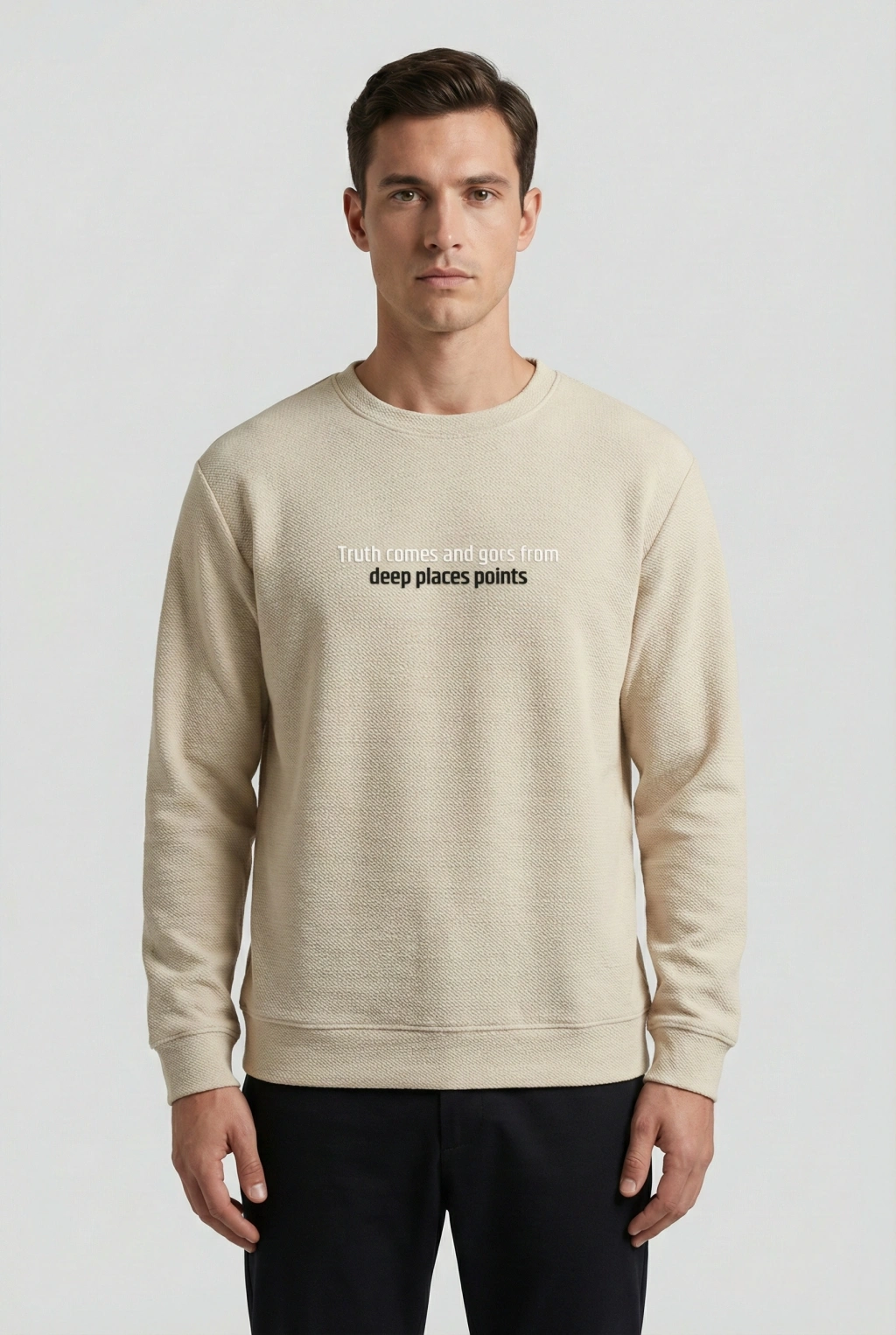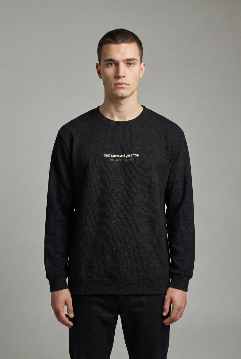 Çakıl Kumaş Rabır Baskı Sıfır Yaka Erkek Sweatshirt