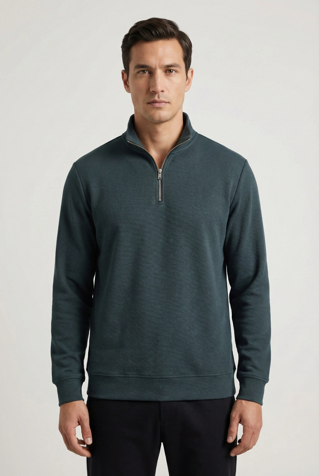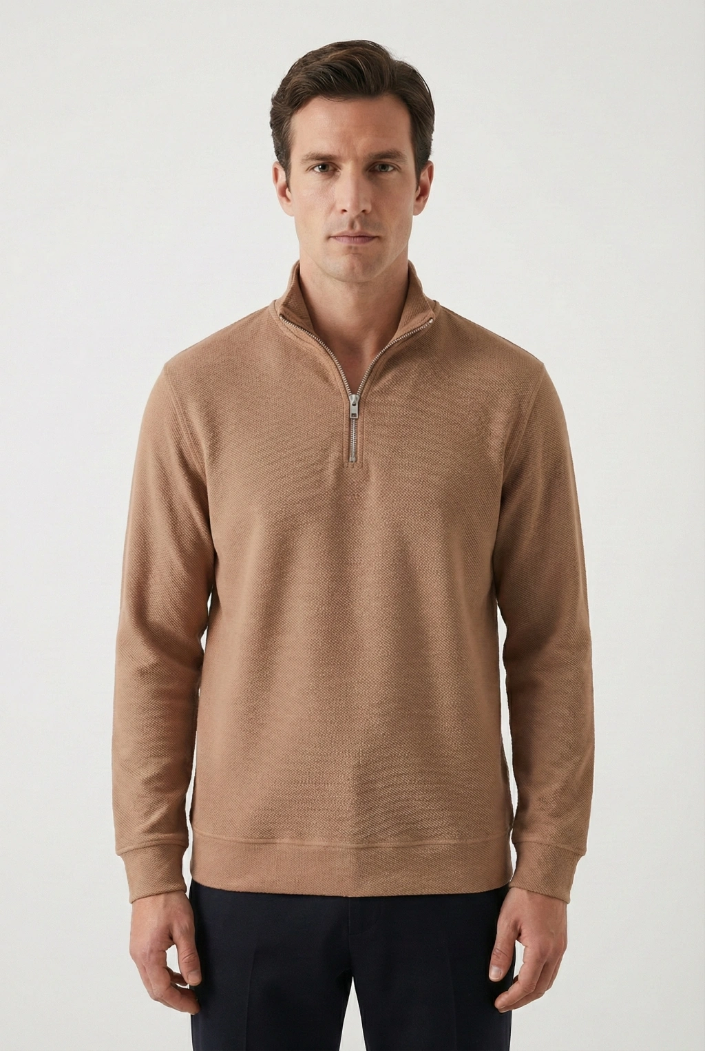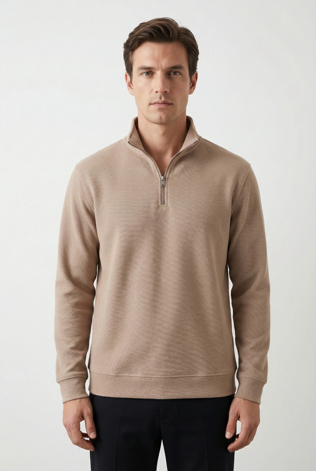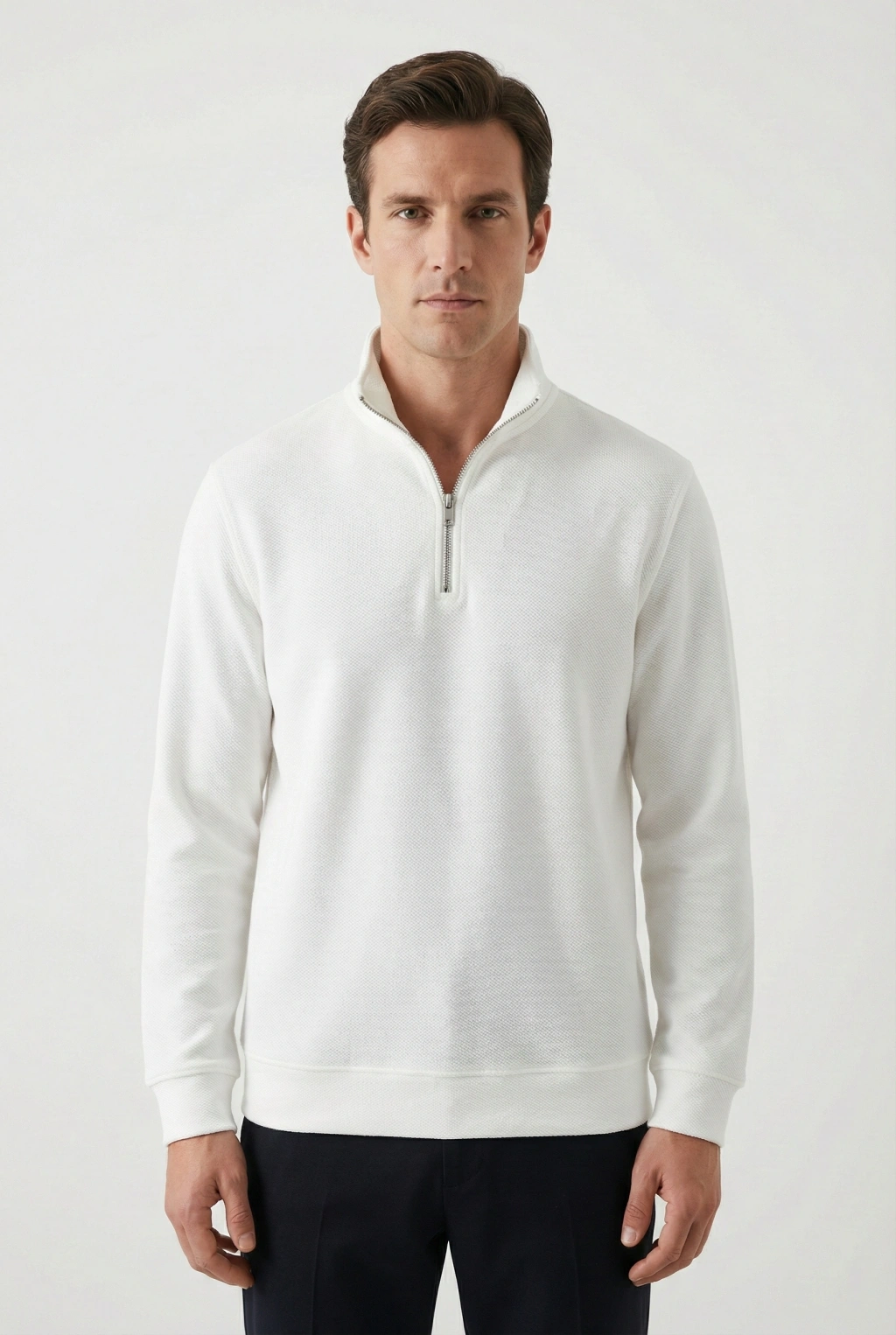 Çakıl Kumaş Yarım Fermuar Dik Yakalı Sweatshirt