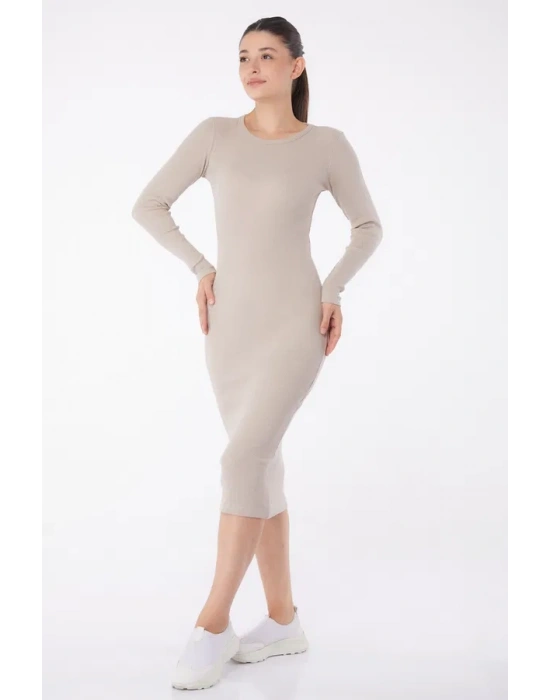 Düz Bisiklet Yaka Kadın Midi Elbise
