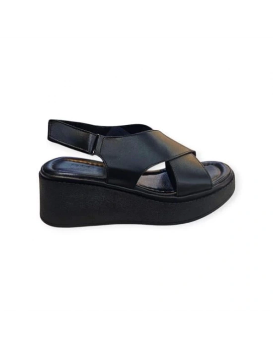 K1471118 Cırt Cırtlı Ayarlanabilir Yüksek Taban Kadın Sandalet Siyah
